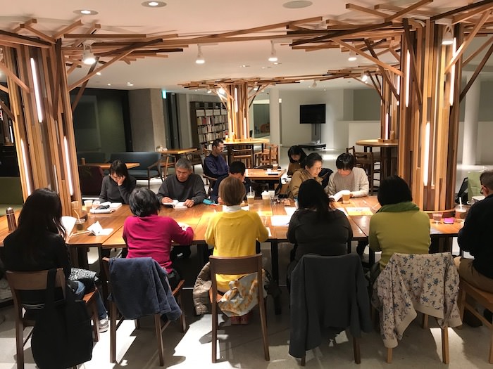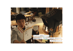 愛媛県新居浜市の総合文化施設・美術館「あかがねミュージアム」の中のカフェにて、金曜夜のカフェイベントの企画のひとつとして2017年1月スタート。大切にしていることは『読み間違いやイントネーションも気にしない。読み終わってから参加者同士で感想をシェアすること』です。